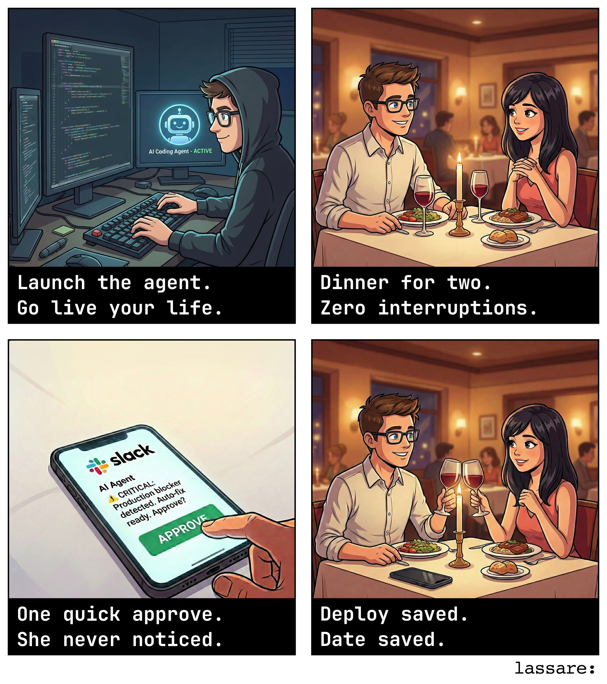 Lassare is an MCP server that lets AI coding agents ask developers questions via Slack, so they can stay in the loop from anywhere.